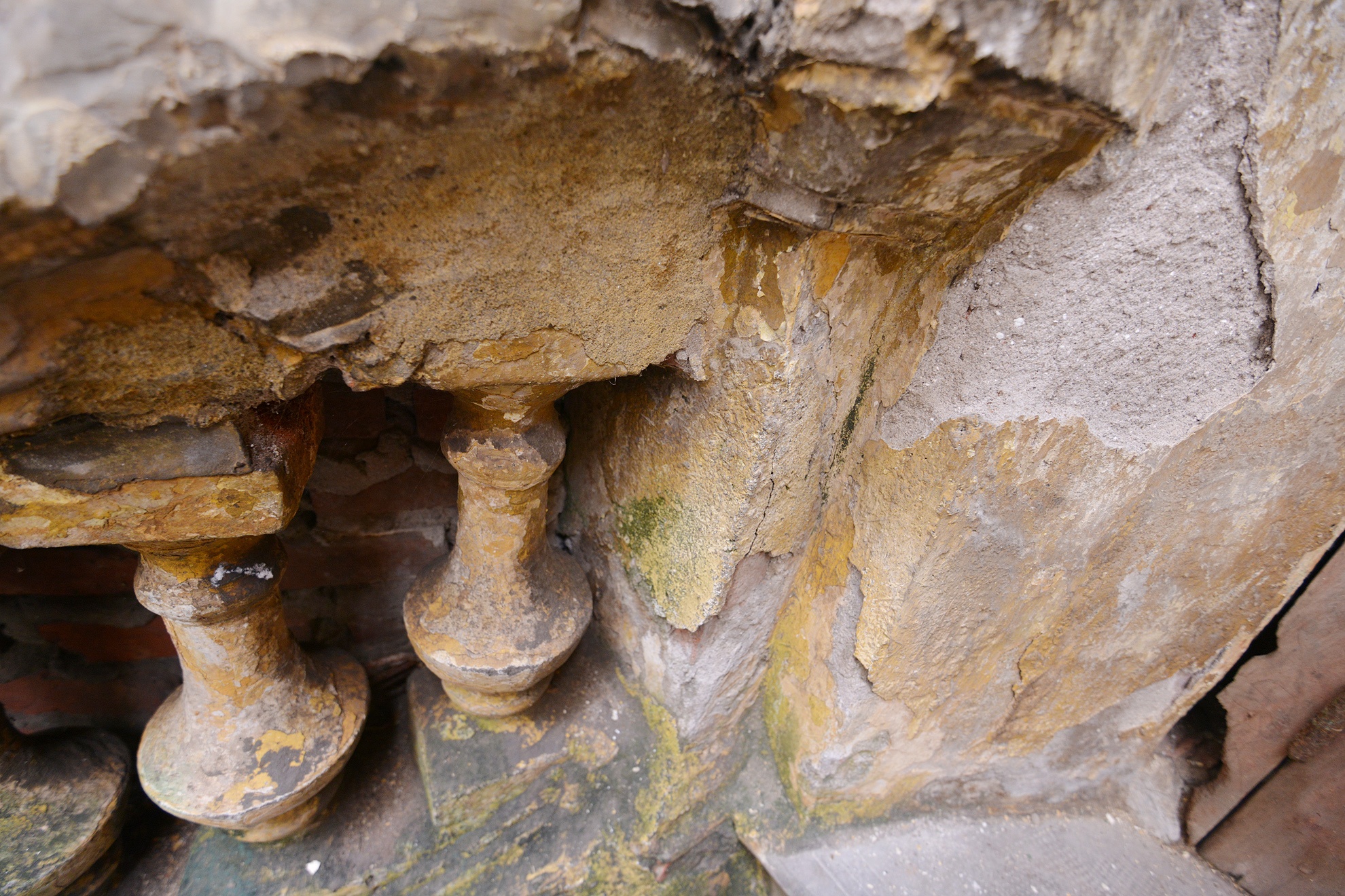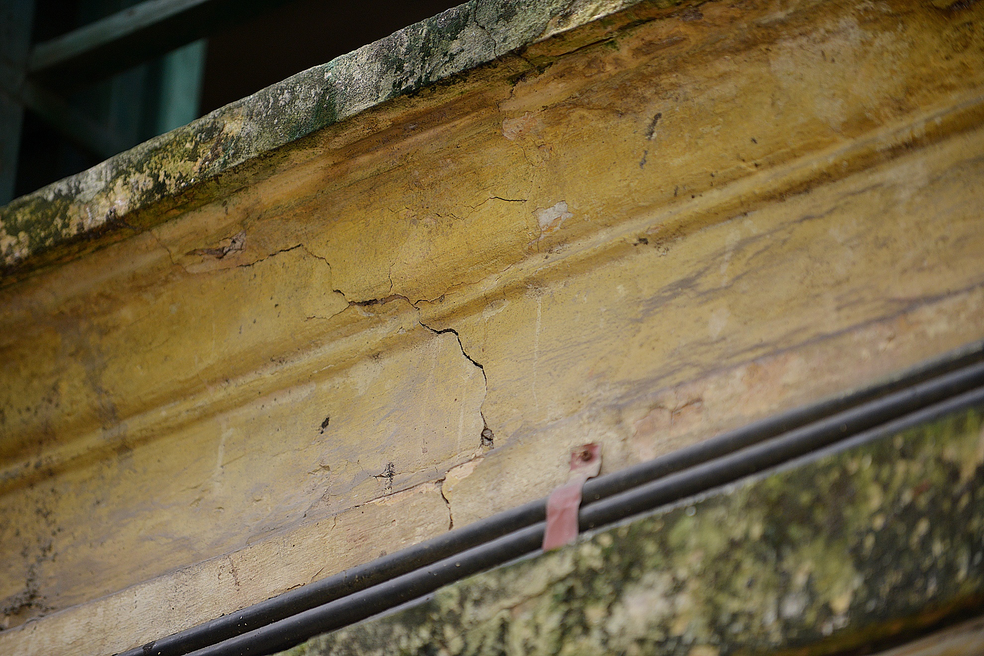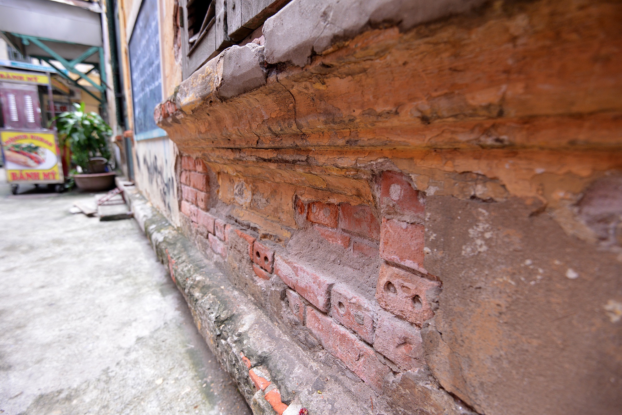 | Vết bong tróc mảng lớn tại tầng 1 của biệt thự 70 Ngô Quyền. |
