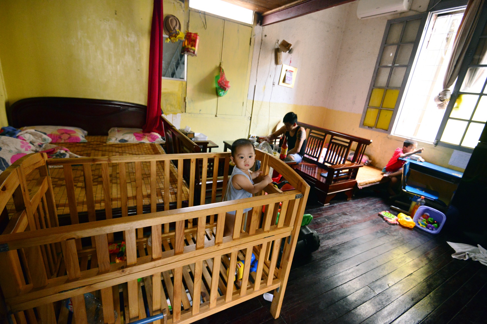Trên tầng 2 được người dân cơi nới thêm chuồng cọp. Nhiều ô cửa sổ bằng gỗ xuống cấp, hư hỏng được thay thế bằng cửa kính.