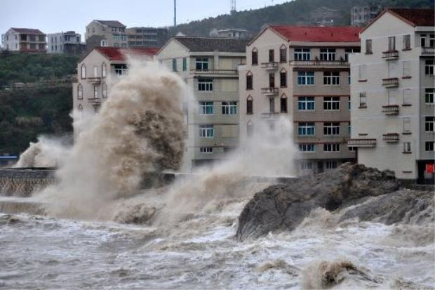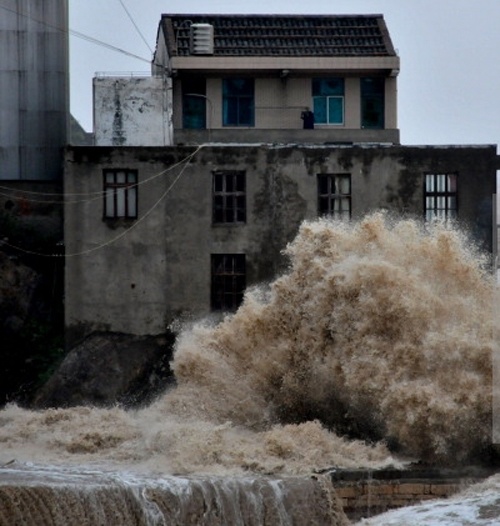 | Sóng dữ cao tương đương với tòa nhà cao tầng ở Chiết Giang. Theo BBC, bão Fitow với sức gió lên tới 151 km/h tàn phá 1.200 ngôi nhà tại tỉnh Chiết Giang và cướp đi sinh mạng của ít nhất 2 người. Ảnh: Thestar.com. |