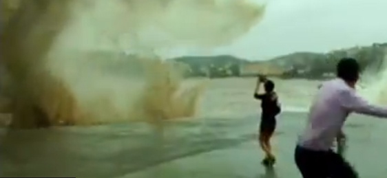 | Clip sóng dữ tại Trung Quốc do bão Fitow gây ra. |