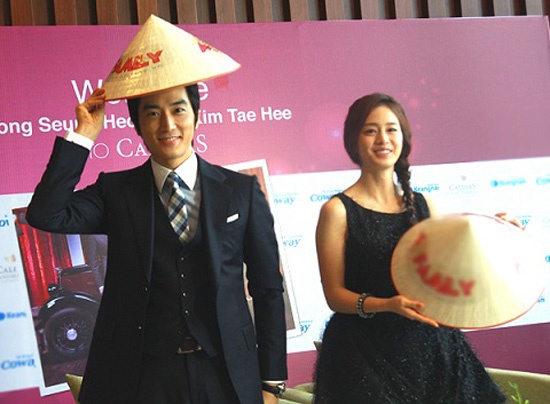 | Song Seung Heon và Kim Tae Hee đến Việt Nam quảng bá cho bộ phim Hoàng tử của tôi vào tháng 1/2012. |