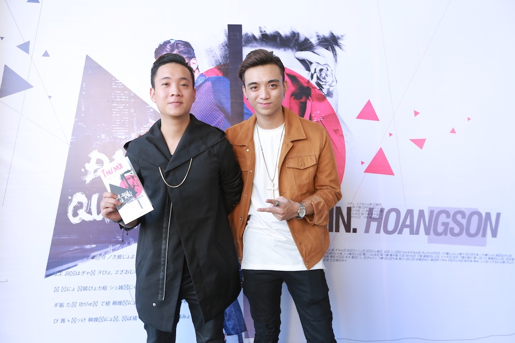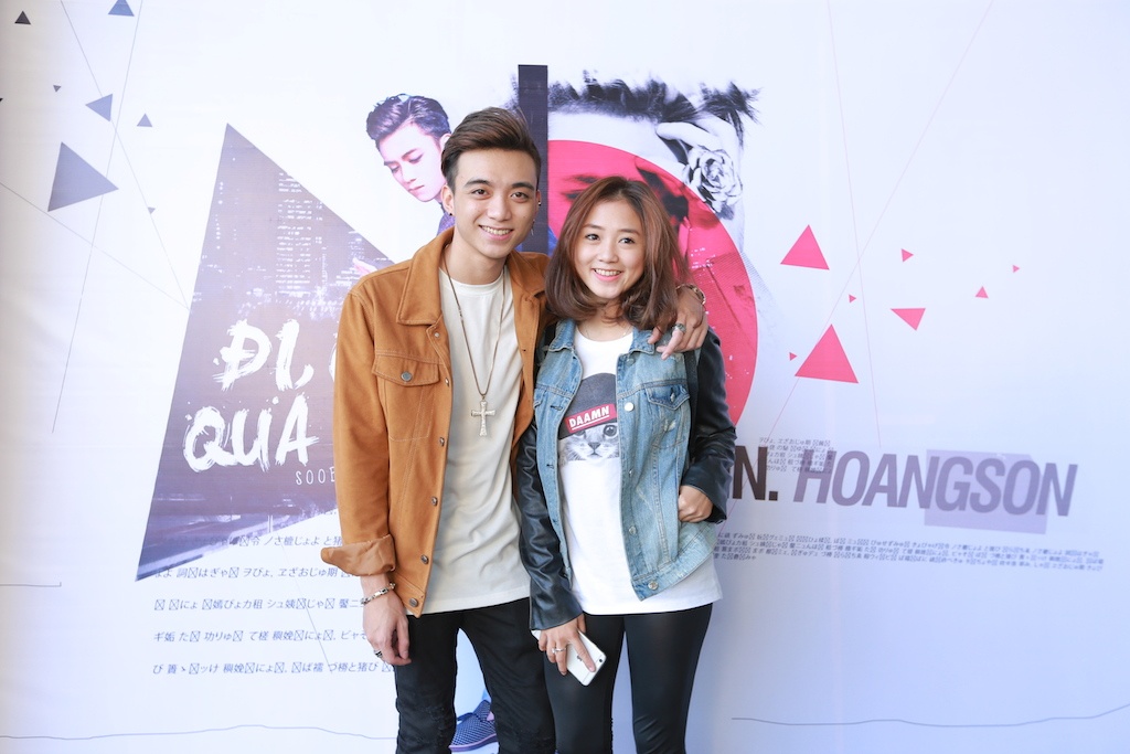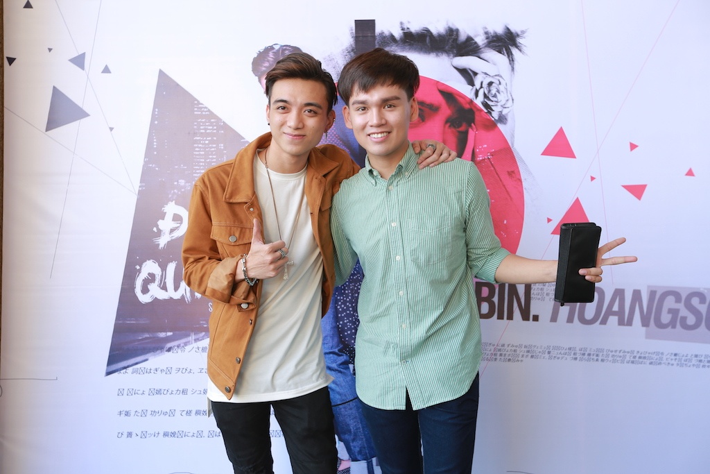 | Soobin Hoàng Sơn là thí sinh đầu tiên của cuộc thi Ngôi sao Việt có sản phẩm ra mắt khán giả sau khi chương trình này khép lại. Trước đó, bản thu Đi qua quá khứ đã được Soobin gửi tới người hâm mộ và nhận được nhiều sự yêu thích. Soobin chụp ảnh với Nguyễn Trần Trung Quân. Nam ca sĩ ăn vận khá giản dị khi tới chúc mừng đồng nghiệp.