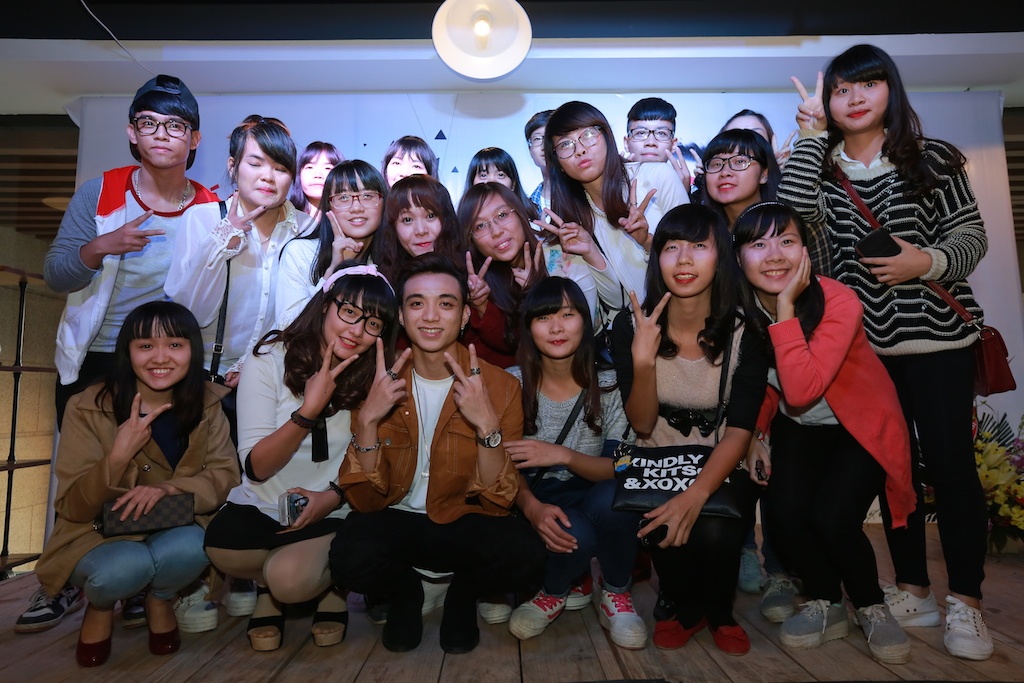 | Tới tham dự buổi họp báo không chỉ có giới truyền thông, gia đình, bạn bè của nam ca sĩ trẻ mà còn có sự góp mặt của đông đảo người hâm mộ. Trước và sau khi chương trình diễn ra, các fan, đặc biệt là "teen girl" vây kín á quân của Ngôi sao Việt để chụp ảnh chung và xin chữ ký. |