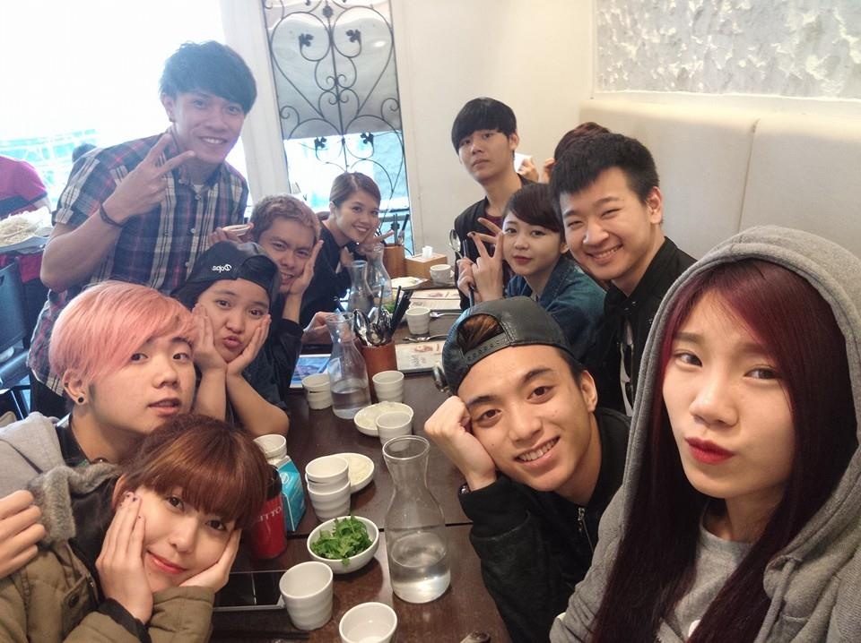 | Hoàng Sơn và Thúy Vy (đầu tiên bên phải) thân thiết trong những ngày ở Hàn Quốc. |