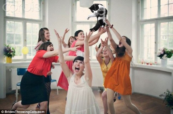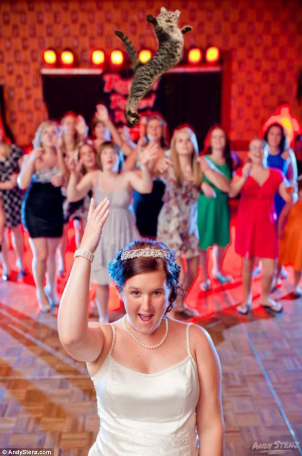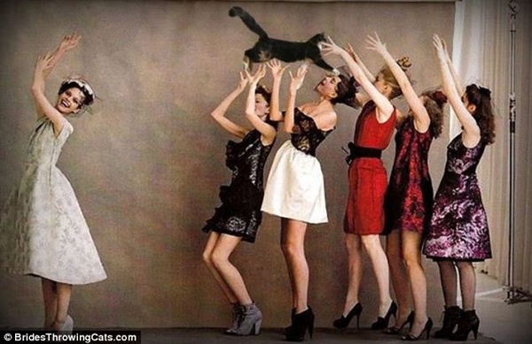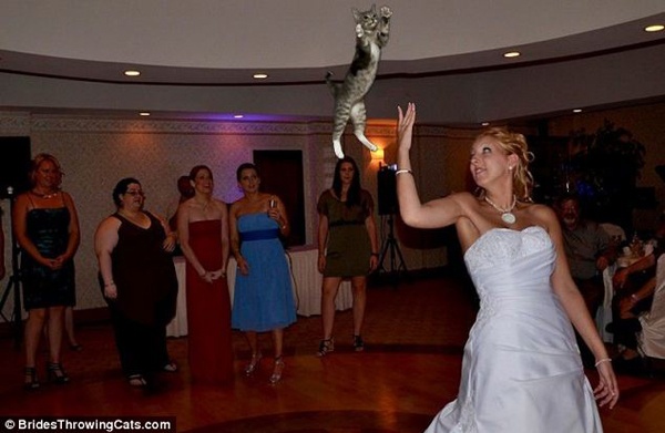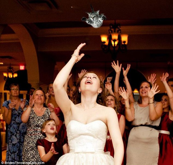 | Rất nhiều cô dâu đã yêu cầu được ghép ảnh ném mèo trong lễ cưới của họ. |