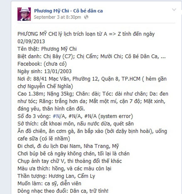 Phương Mỹ Chi: Lý lịch trích loạn từ A => Z tính đến ngày 2/9/2013.