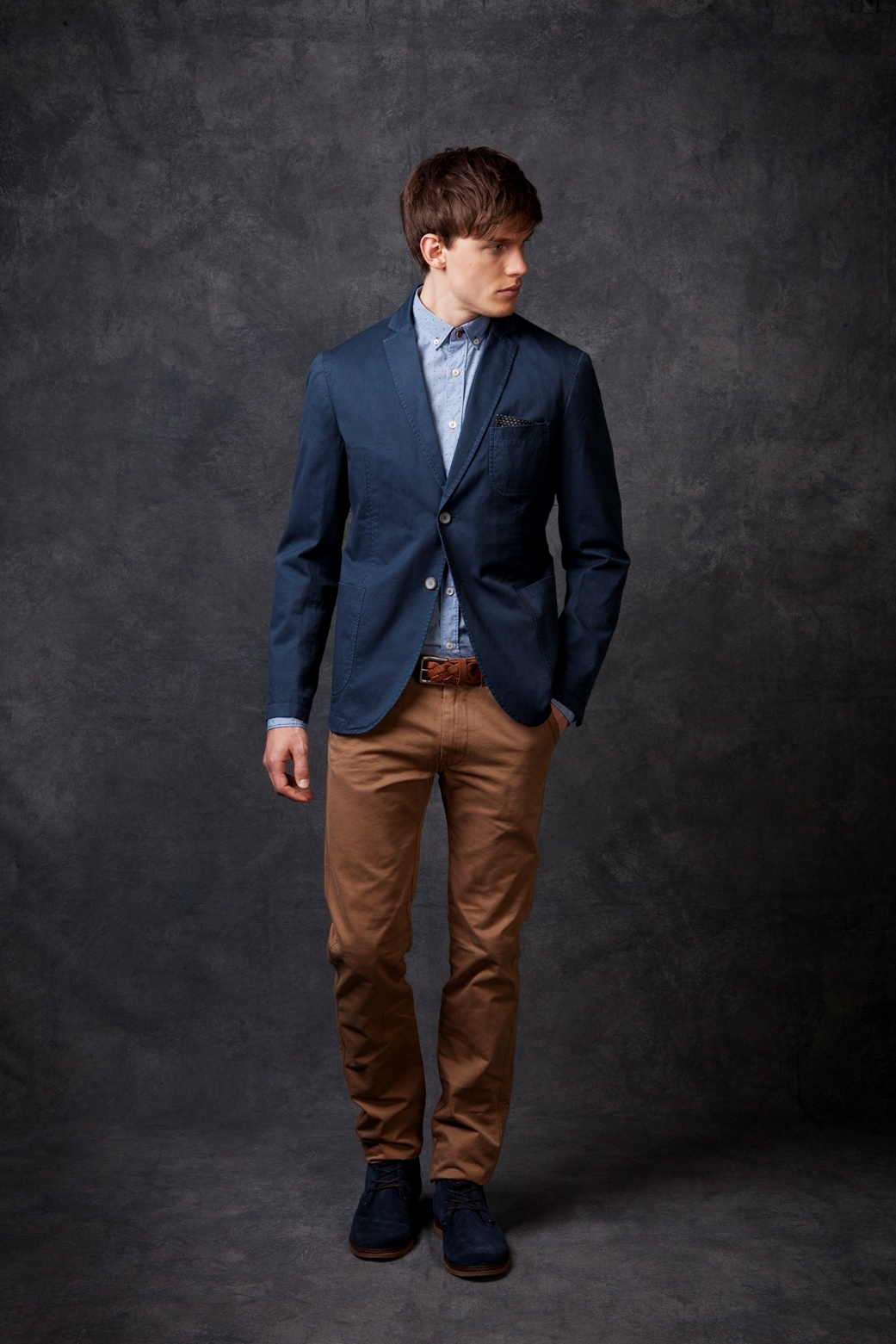 Dòng thời trang cho nam tiếp tục khẳng định vị trí của mình với các BST thu đầy phong cách. Blue life gửi đi thông điệp “Màu xanh lên ngôi” qua thiết kế đa dạng các tông màu xanh, kết hợp cùng màu gạch đỏ, màu beige. Cổ áo với bâu thấp, hàng nút đôi trên tay áo, khoác blazer kiểu cách…tất cả chi tiết làm nên BST Regimental đặc sắc. Sự đa dạng của phụ kiện trong collection thu 2013 cho phái nam các cách phối đồ ấn tượng.