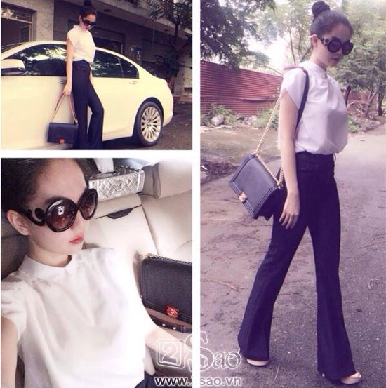 | Tuần qua Trà Ngọc Hằng khá ưu ái tông màu trắng nhã nhặn. Dù chọn áo sơ mi, váy hay cả cây trắng thì cô nàng cũng khéo chọn thêm phụ kiện đi cùng để tông màu này không bị nhàm chán. |