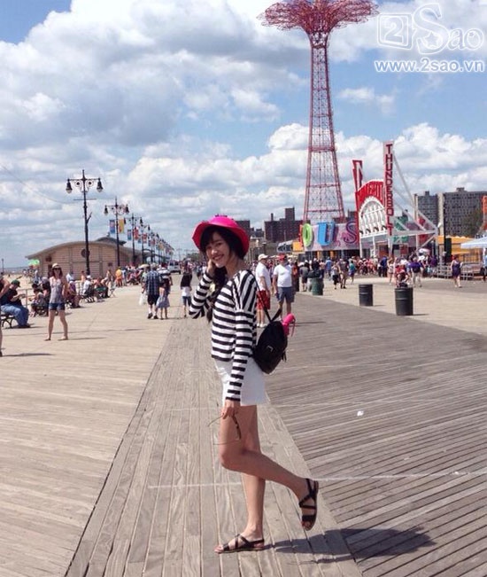 | Có khi người đẹp dịu dàng với váy liền thân, khi lại trẻ trung với trang phục màu sắc. |