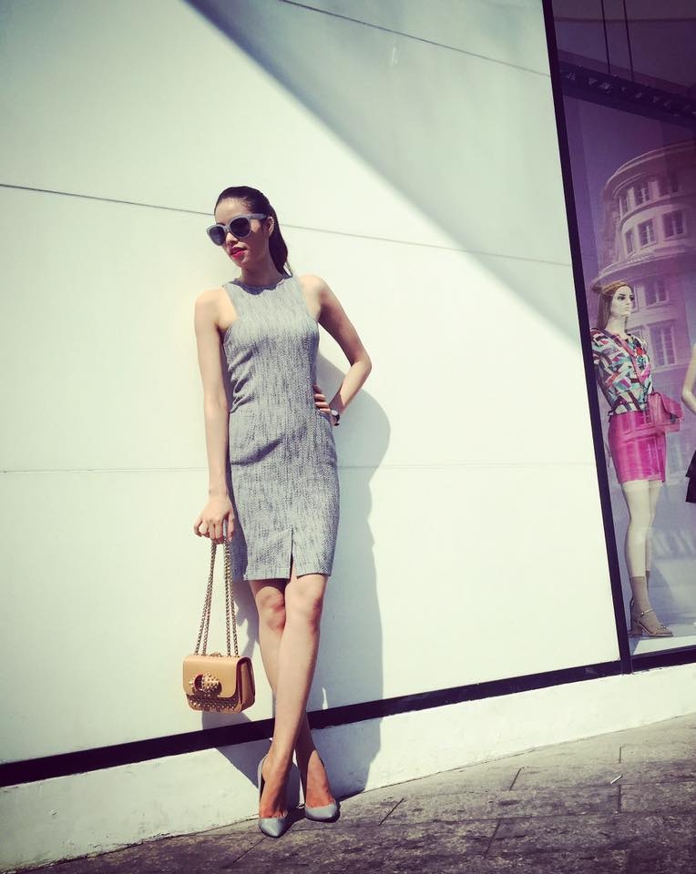 Khi diện váy liền thân bạn có thể chọn giày cùng tông với váy như Phạm Hương để diện mạo thêm thanh lịch và sang trọng. |