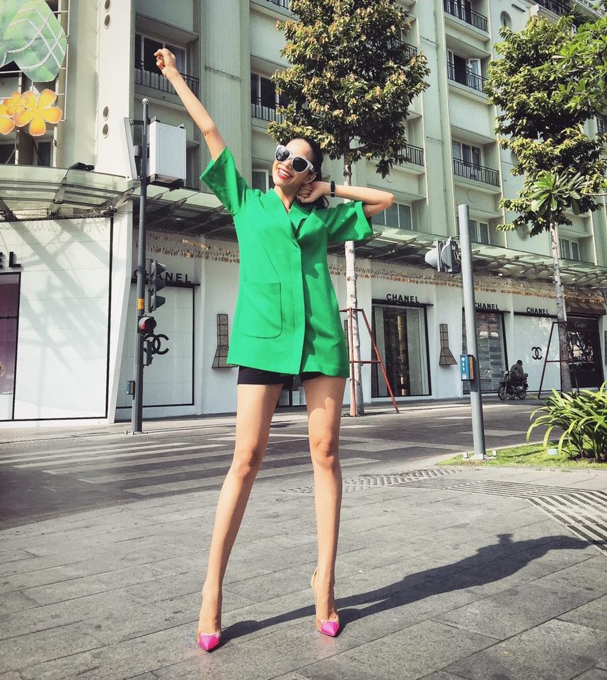 Với lợi thế về vóc dáng và chiều cao không khó để Phạm Hương lựa chọn được trang phục ưng ý nhất khi xuống phố. Áo tay cộc may giả vest kết hợp cùng quần short đen là cách phối màu hợp lý đồng thời mang đến phong cách ấn tượng cho Phạm Hương. |