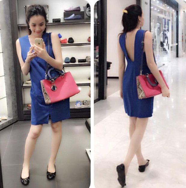 Theo người đẹp, phụ nữ mang thai là thời kỳ đẹp nhất. Cô muốn lưu giữ khoảnh khắc thiêng liêng bằng cách ăn vận chỉn chu và chụp ảnh ngẫu hứng ở mọi nơi, mọi lúc. Giai đoạn tháng thứ 4, chân dài tự tin diện mốt váy ngắn, khoe lưng trần.