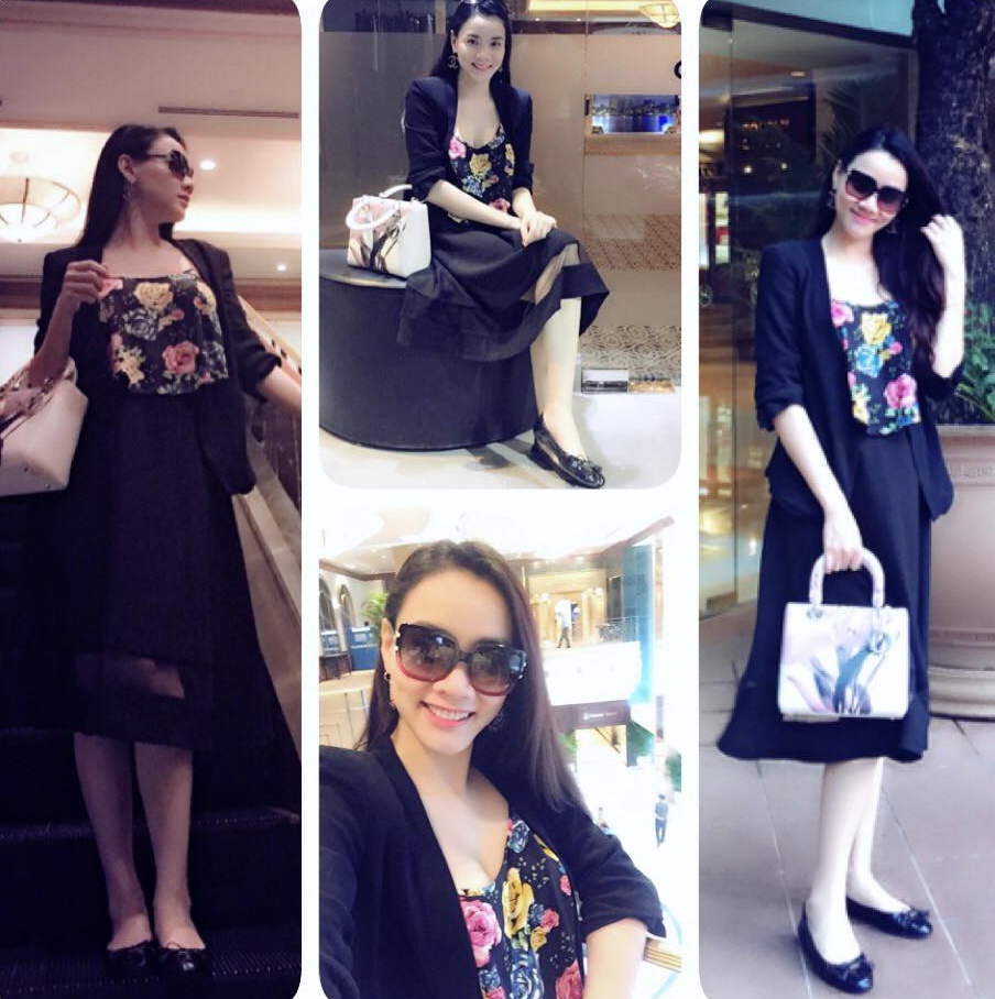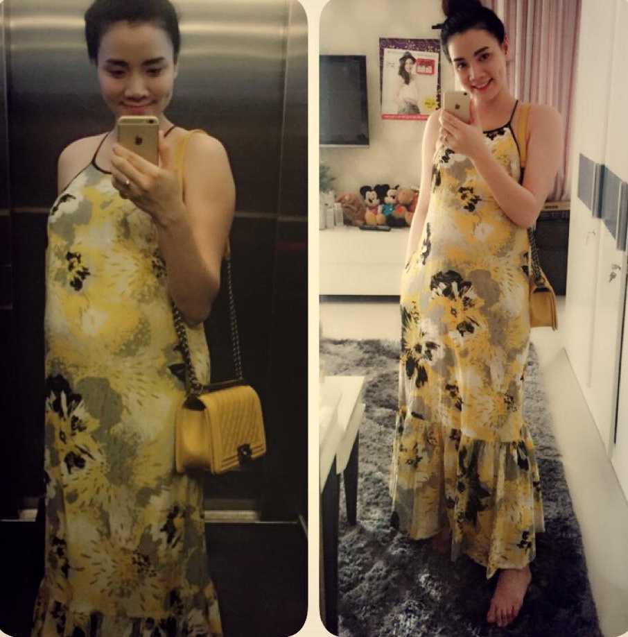 | Ở tháng thứ 7, Trang Nhung vẫn giữ hình ảnh thời trang với những kiểu mốt hợp trào lưu. Trong ảnh, bà mẹ sinh năm 1985 diện mốt váy hai dây, họa tiết tông vàng bắt mắt. Túi xách Chanel ton sur ton. |