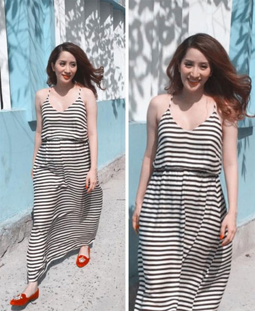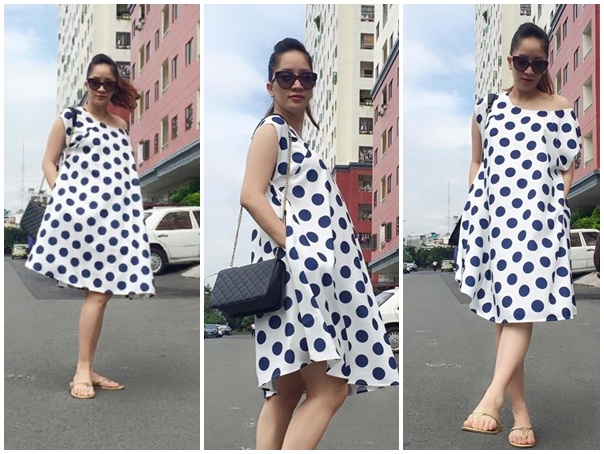 | Từ những tháng đầu thai kỳ cho đến nay, Khánh Thi giữ vững phong độ mặc đẹp. Không chỉ chú trọng trang phục ghế nóng, dự sự kiện, chỉn chu khi tham gia talk show, nữ giám khảo Bước nhảy hoàn vũ còn chăm chút style đời thường. Cô thường xuống phố với những bộ đầm bầu nữ tính. |