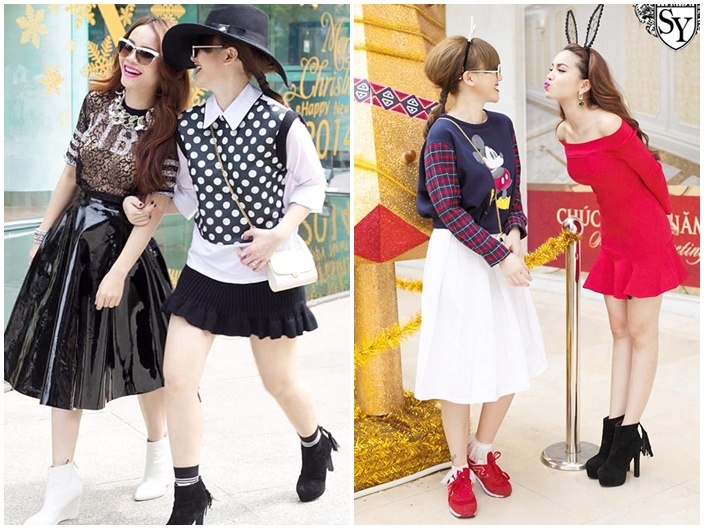 | Sau nhiều nỗ lực trong việc chăm chút hình ảnh, chị em Song Yến trở thành icon thời trang đường phố của làng giải trí Việt. Trên những con phố tại Việt Nam hay du lịch nước ngoài, cặp chị em luôn gây chú ý với phong cách đậm chất châu Á phù hợp với ngoại hình có chiều cao khiêm tốn. |