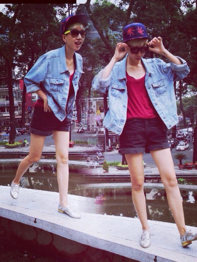 | Phan Linh Next Top diện trang phục cá tính và bụi phủi khi dạo trên những con phố Sài Gòn. |