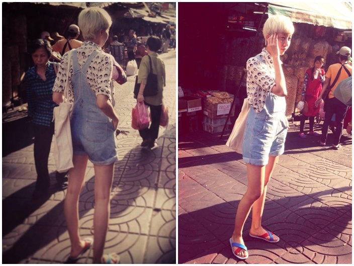 | Trong tuần này, Phan Linh có chuyến du lịch Thái Lan cùng những người bạn thân, cô diện trang phục yếm denim năng động. |