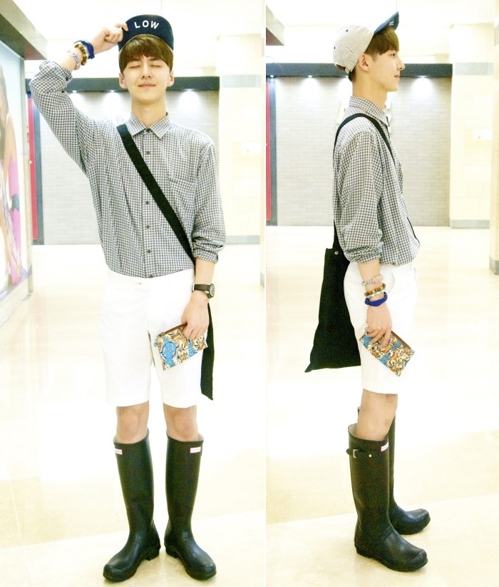 | Ngay cả những đôi ủng tưởng như "thô kệch" cũng được anh chàng tận dụng làm phụ kiện thời trang. |