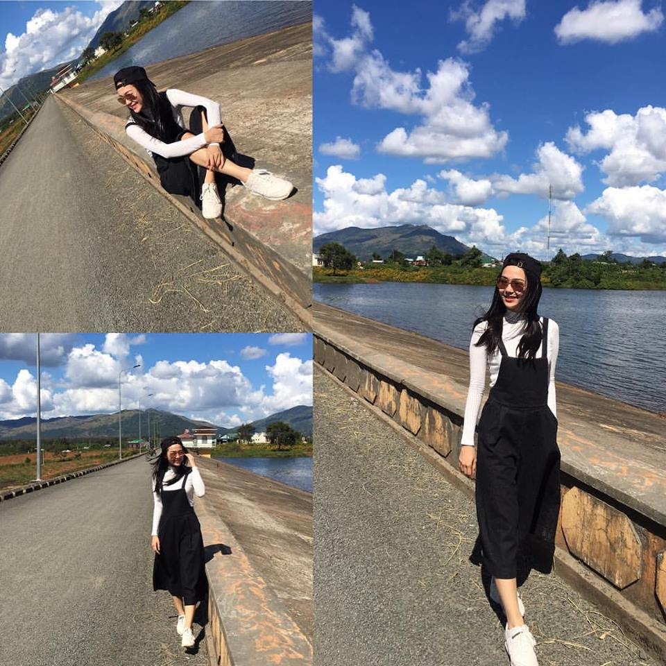 | Minh Hằng có chuyến du lịch Hàn Quốc trong tuần qua. Nữ ca sĩ sinh năm 1987 diện quần yếm tối màu, phối cùng là áo thun cổ lọ tay dài kín đáo. Mũ lưỡi trai đội ngược tinh nghịch. |
