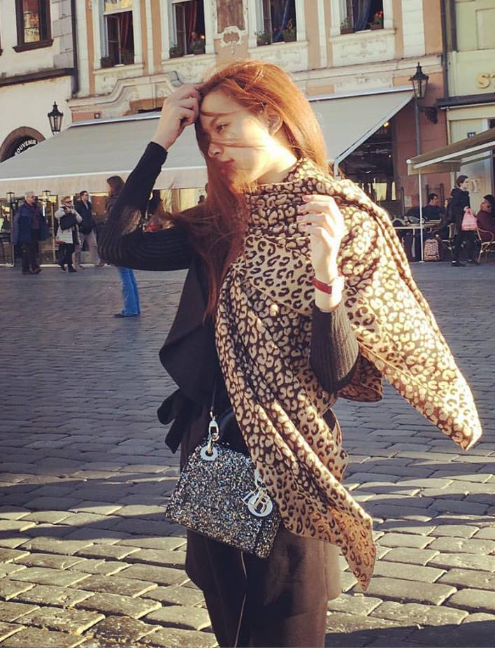 | Hoàng Thùy Linh tạo ấn tượng phong cách với cách dùng phụ kiện họa tiết da báo sành điệu, nổi bật trên nền trang phục tối màu. |