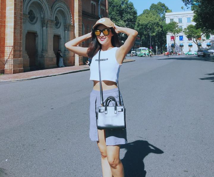 | Người mẫu - diễn viên Hạ Vi chọn phong cách năng động khi xuống phố. Trong ảnh, bạn gái Cường Đô La diện áo crop-top, kết hợp chân váy xẻ tà cá tính. |