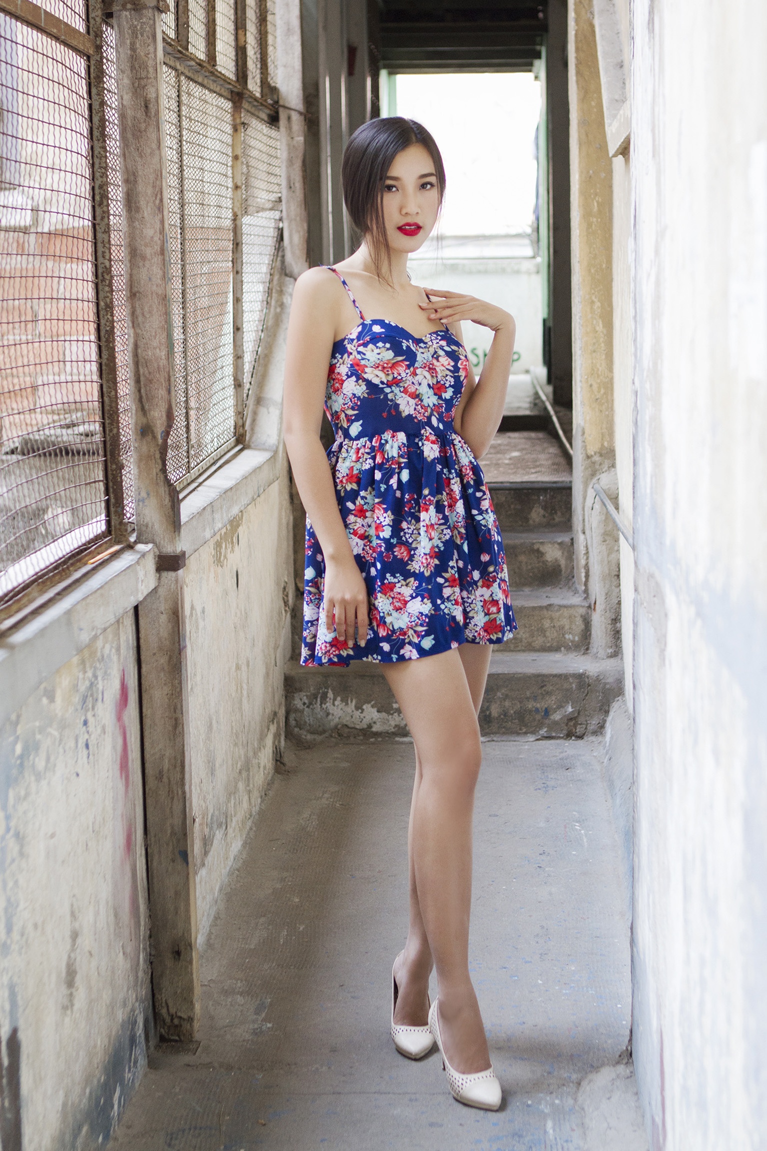 | Bộ cánh giúp người đẹp khoe lợi thế vóc dáng và đôi chân thon dài. Bộ ảnh được hỗ trợ bởi nhiếp ảnh: Alexz, trang điểm: Tuyết Nhi, stylist: Candy. |