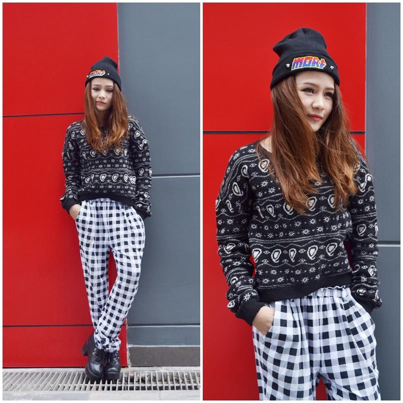 Kết hợp áo len mỏng cùng quần thun boyfriends ca-ro, giày boots và nón len và sự lựa chon thông minh của bạn nữ cá tính này trong thời tiết se lạnh của Sài Gòn. Chiếc quần boyfriends họa tiết ca-ro đang là trao lưu nổi bật được giới trẻ yêu thích.