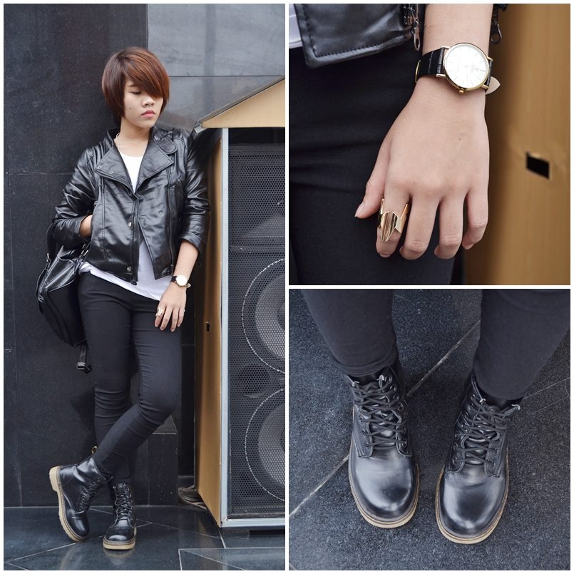 | Thường những gam màu ấm, trầm được ưa chuộng trong tiết se lạnh cuối thu, tuy nhiên, cô gái đáng yêu này lại chọn cho mình gam màu đen-trắng làm chủ đạo tạo vẻ ngoài rất tomboy. |
