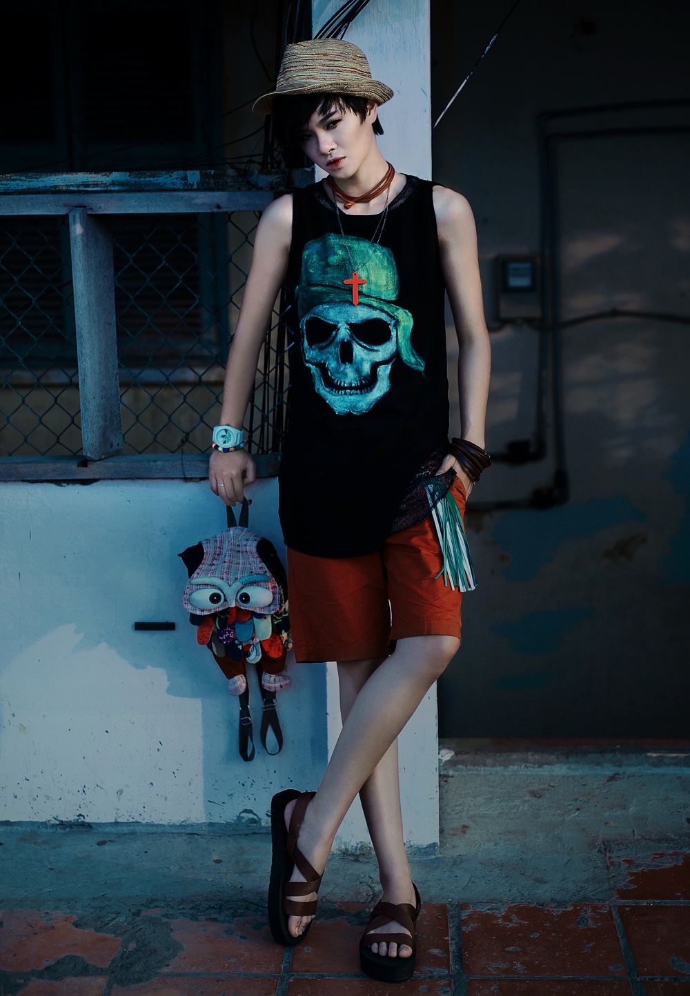 Trong bộ ảnh mới, nữ người mẫu gây bất ngờ với gu thời trang cực chất. Trang phục được mix khá ngẫu hứng với quần jeans, áo thun họa tiết phá cách, giày sandals hơi hướng nam tính.