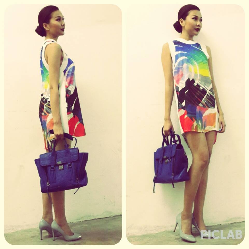 Người mẫu Minh Tú có chuyến công tác tại Singapore. Ngoài công việc, cô tận dụng thời gian rảnh để thả bộ trên những con phố hiện đại. Trong ảnh, nữ người mẫu tinh nghịch tạo dáng với bộ váy bút chì ôm sát. Chân đi giày sandals và lưng đeo túi balo hiện đại.