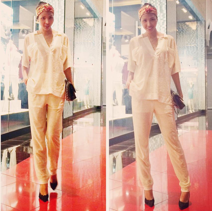 Trà Ngọc Hằng liên tục thay đổi trang phục khi xuống phố. Tuần này cô ghi điểm với hình ảnh trẻ trung, thể hiện sự đầu tư và tiến bộ trong phong cách. Trang phục cô chọn đi theo tông màu rất hài hòa.