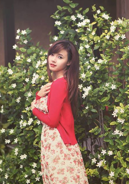 Nữ diễn viên Midu lại nhẹ nhàng nữ tính trong mẫu đầm in hoa mùa hè phối cùng áo cardigan tông màu đỏ nổi bật.