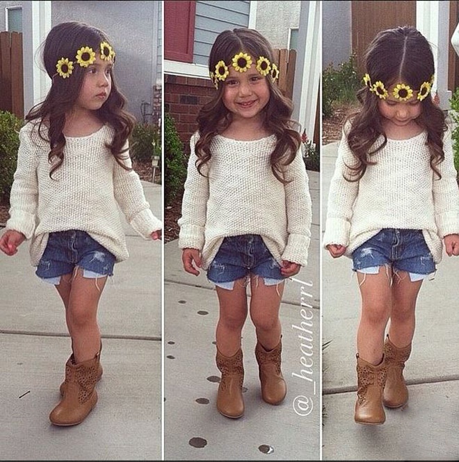 | Những chiếc áo pull, áo sơ mi hoặc các loại quần jeans, váy ngắn chất liệu vải dày trong hè vừa thoáng mát, vừa đủ che gió lạnh luôn được các mẹ tận dụng để tạo thành những set đồ street style mới lạ hơn cho bé trong mùa thu, bằng cách kết hợp với phụ kiện như nón len, vòng hoa, khăn choàng … |