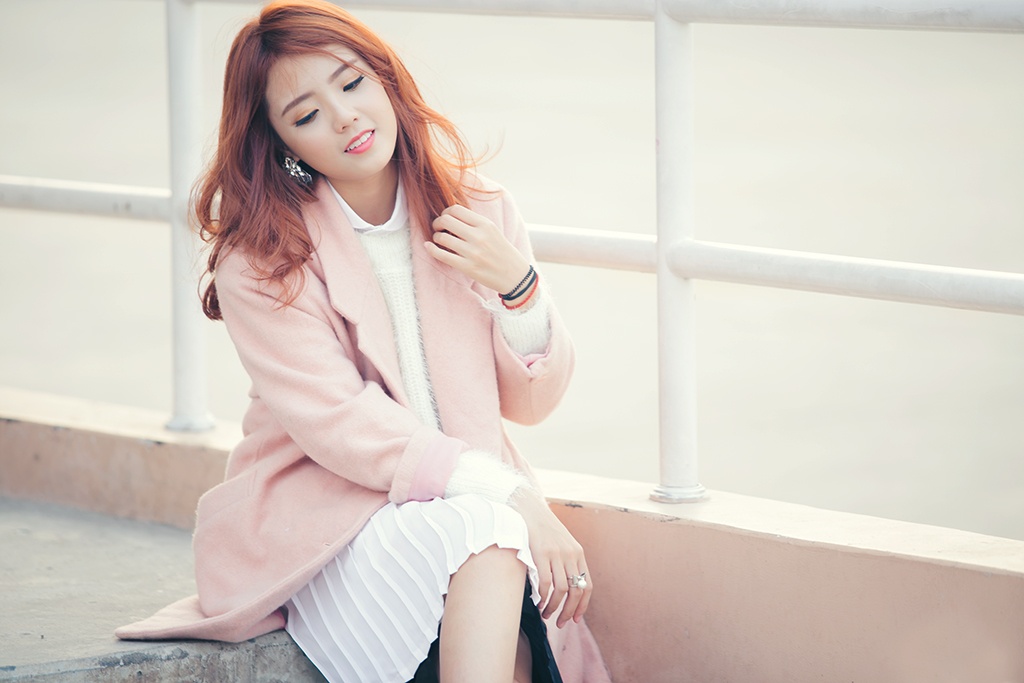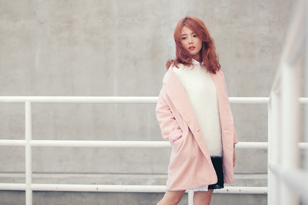 | Gam màu hồng ngọt ngào được cô mix ăn ý cùng chân váy xếp ly và áo khoác dạ, gam hồng pastel. |