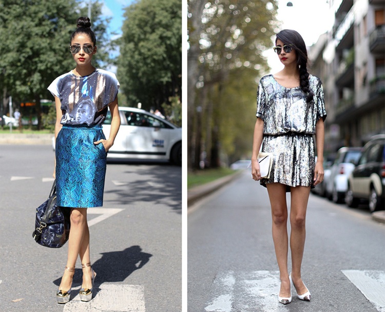 | Nếu còn ngại sẽ quá nổi bật bởi chất liệu hút mắt này, bạn chỉ nên thử chọn 1 đôi giày metallic thay vì váy, áo, hay quần ánh kim. |