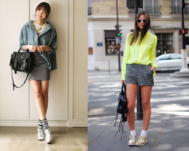 | Để trông mới lạ, bạn đừng ngại mang giày metallic và vớ dài, hoặc vớ ngắn, vừa che chắn chân xinh khỏi nắng nóng, vừa tạo nên tổng thể trang phục sành điệu và cá tính. |