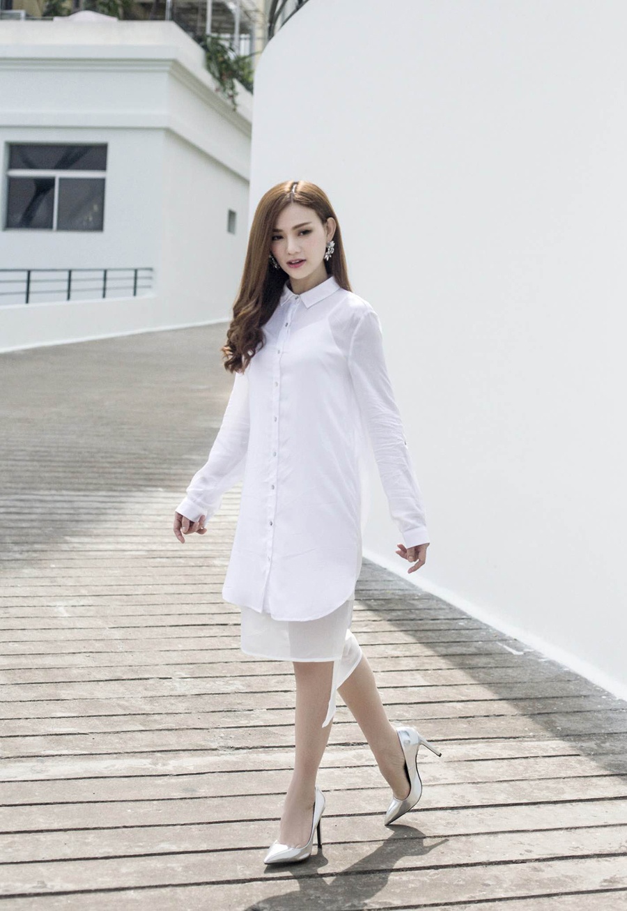 Phong cách gắn liền với Thu Thủy là những bộ cánh tối giản, thanh lịch. Gam màu trơn được cô yêu thích và ứng dụng trong nhiều dịp. Trong ảnh, bà mẹ một con diện set đồ tông trắng, kết hợp giày ánh kim nổi bật.
