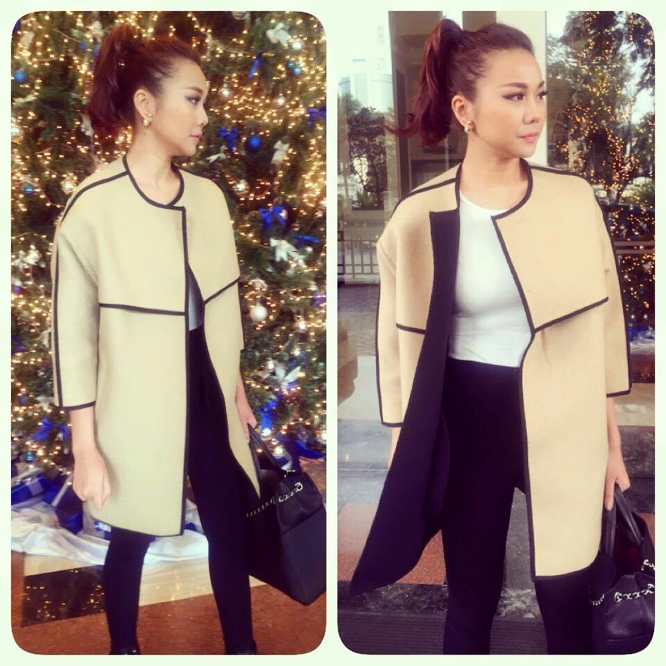 | Gam màu trầm được "nữ hoàng giải trí" ưa chuộng vào mùa đông. Những bộ cánh của Hà Hồ luôn có những điểm nhấn hút mắt, thể hiện gu thẩm mỹ cao. |