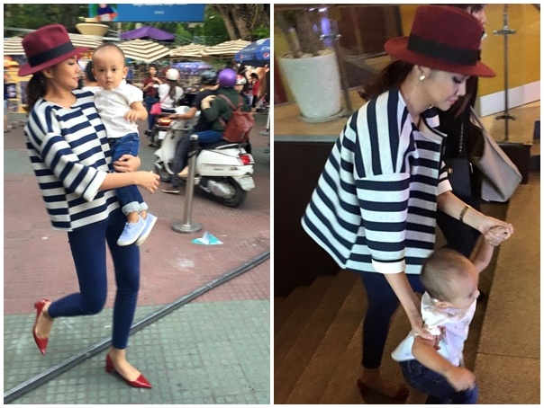 | Phong cách thời trang hiện đại, năng động ảnh hưởng mạnh đến gu street style những tháng cuối năm của Hồ Ngọc Hà. Trong ảnh là bộ cánh ton-sur-ton ăn nhập với hình ảnh thường thấy ở bà mẹ một con. |