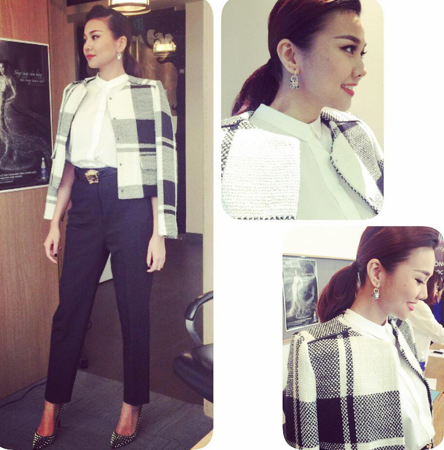 | Phong cách thanh lịch được Thanh Hằng chọn lựa khi tham sự các sự kiện diễn ra vào đầu mùa đông phương Nam. Siêu mẫu trông ấn tượng với set trang phục lịch thiệp, áo khoác lửng ca-rô cổ điển bên ngoài rất phù hợp với vai trò giám khảo một cuộc thi về thời trang. |