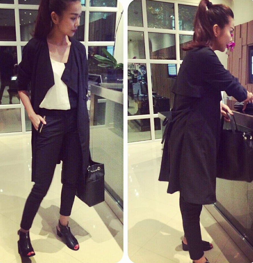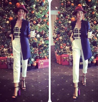 | Siêu mẫu trông năng động trong những ngày cuối tháng 12, dịp cận kề Noel. Trong ảnh, cô nổi bật với mốt áo hai dây, quần âu và áo vest hiện đại. |