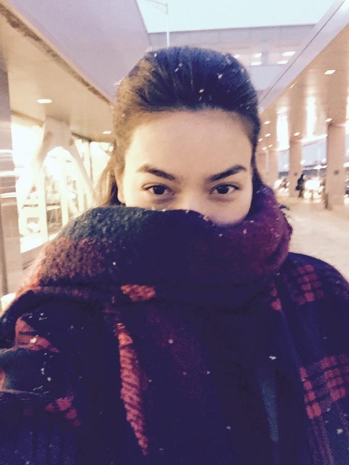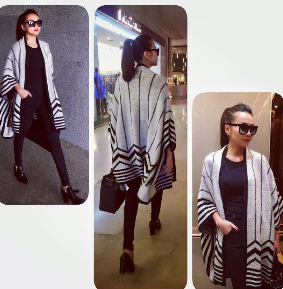 | Về mùa lạnh, Hà Hồ cũng rất chuộng những kiểu khăn to bản, chất liệu dạ, len ấm áp. |
