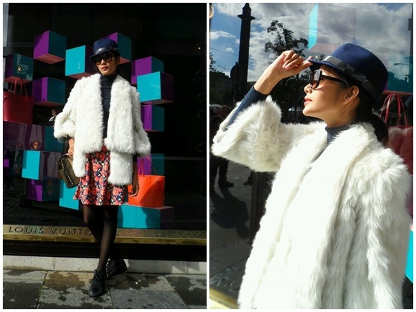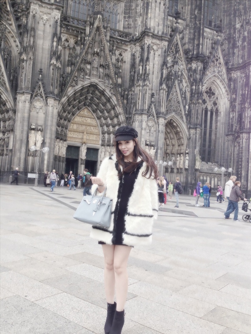 | Phong cách mùa đông kiêu sa của Ngọc Bích khi cô có chuyến lưu diễn tại châu Âu, áo khoác lông sành điệu kết hợp phù hợp với boot cổ ngắn. |