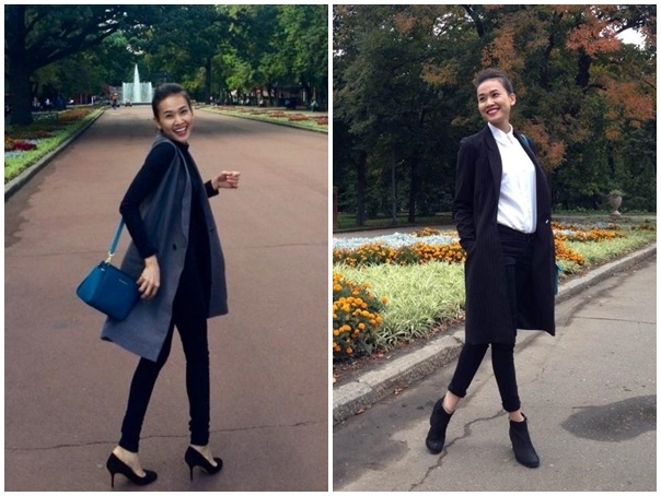 | Dương Mỹ Linh chọn phong cách mùa đông thanh lịch, áo vest dáng dài phối cùng sơ mi và quần vải tông màu đen, boot cổ ngắn đi cùng ăn nhập. |