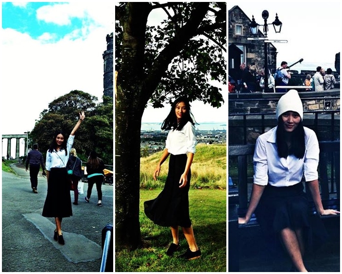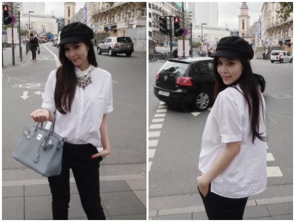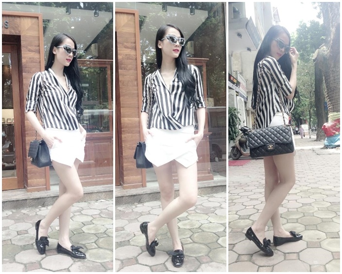 | Hồ Ngọc Hà cá tính với trang phục đường phố đơn giản, hiện đại. Áo sơ mi trắng kết hợp cùng short ngắn và túi xách cùng tông, giày oxford đế bệt cá tính. |