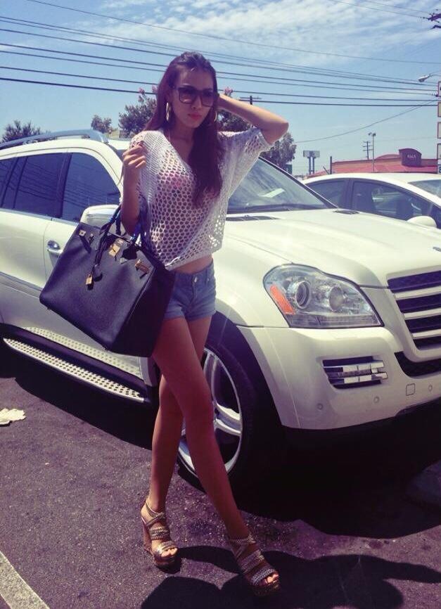 Người mẫu Kim Dung ăn vận khá lịch sự khi thả bộ trên một con phố tại đất nước Hoa Kỳ. Hình ảnh hiện đại và năng động của cô phù hợp với không khí, bối cảnh xung quanh.