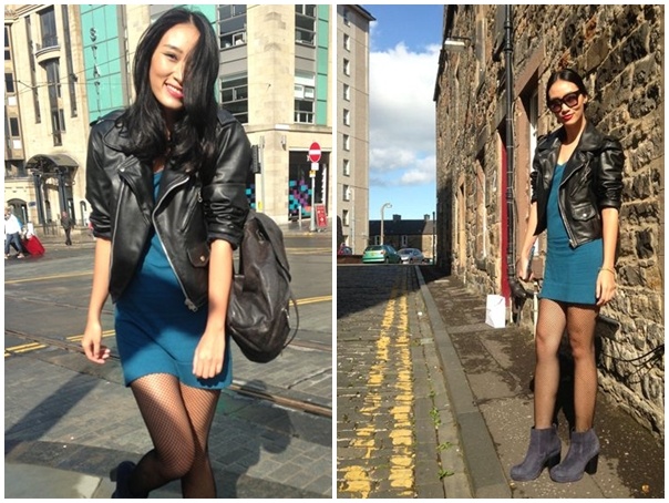 Cô trông cá tính với áo jacket da, váy thun ôm sát khi đi thưởng ngoại cảnh đẹp tại London.