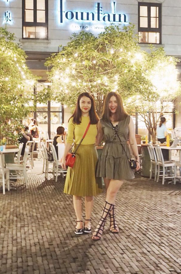 Chị em Song Yến sành điệu trên đường phố tại Thượng Hải. Hai chị em nữ ca sĩ luôn ăn vận đẹp khi có chuyến du lịch nước ngoài.
