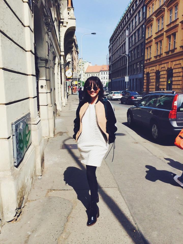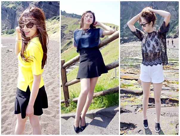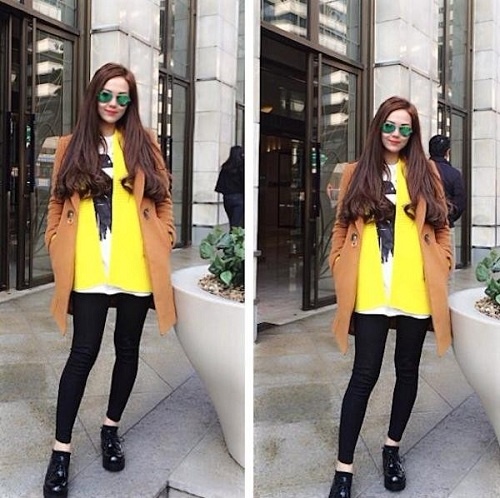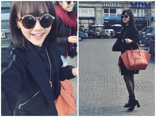 Cũng trong chuyến du lịch Hàn Quốc hồi tháng 4, người đẹp ăn vận khá ấn tượng với những kiểu mốt hợp xu hướng.