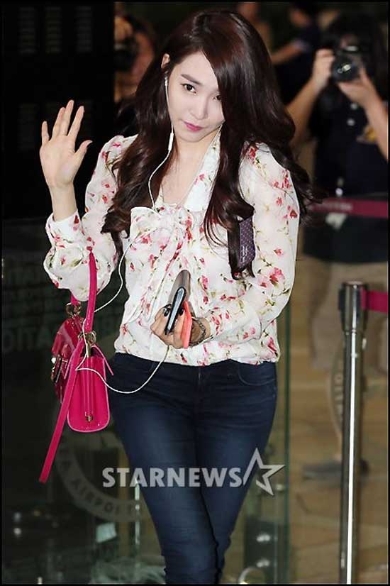 | Áo họa tiết, quần gam màu nhạt, giày thể thao tạo cho Tiffany vẻ ngoài rất đáng yêu. Bạn gái ở vóc dáng nào cũng có thể học hỏi theo nữ ca sĩ xứ Hàn. |
